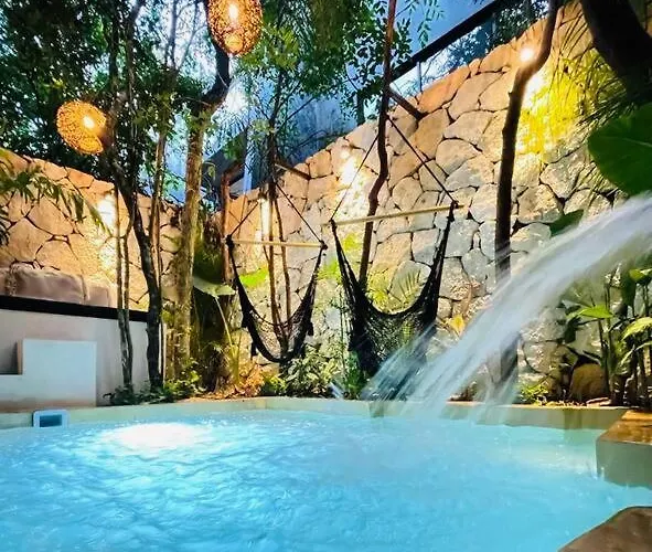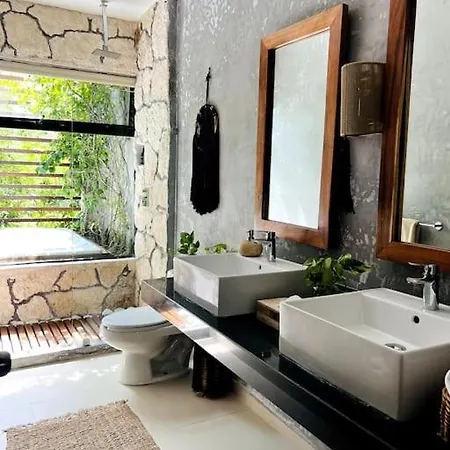 Nestled in the Zama district of Tulum, the 3-bedroom Luz De Luna Tulum Villa is around a 25-minute walk from the Xcacelito Cenote and offers a solarium and a Jacuzzi.